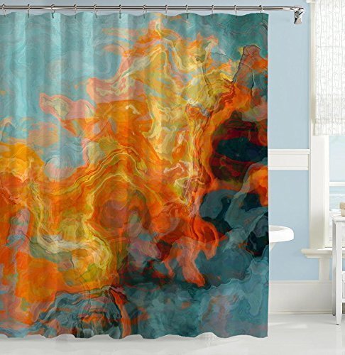 Abstract shower curtain, orange, yellow and aqua shower curtain, Fire and Water