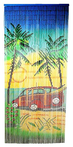Beach Scene Bamboo Curtain w Woody Car and Surfboard