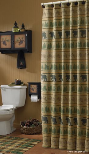 Description: Bear Tracks Shower Curtain 72" wide x 72" long Priced and sold individually Unlined. Button hole top. 100% Cotton. Designed and manufactured by Park Designs.