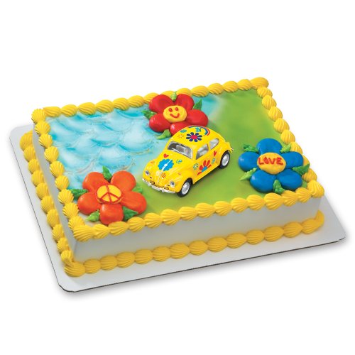 Description: Food-safe plastic. Car is approximately 3"H on cake. Includes groovy car with rolling wheels. Can be used as a toy after use as a cake topper.