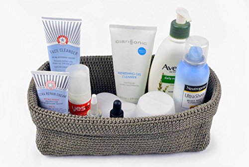 Description: Design Imports is bringing stylish and functional organization pieces to your home. Design Imports offers crocheted baskets that will help organize your kitchen, living room, bathroom, bedroom, or office. Each crochet basket is handmade and brings a unique look to your home. These crochet baskets are semi-rigid, which allows you to mold the shape of the basket to fit your space or need. Along with the ability to manipulate the overall shape, you can also manipulate the depth; the sides fold down and allow you to customize the depth of your baskets. They can also be folded flat for compact storage. The baskets are machine washable, so you can use them for make-up, food, messy paints, crayons, etc. and simply throw them in the wash. Made of 100% Crochet Polypropylene. The large basket measures 11 inch x 5 inch x 5.25 inch and the small basket measures 5.5 inch x 5.5 inch x 6 inch.