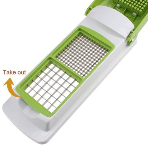 With our Etree 12 in 1 Nicer Dicer With Plus you have a kitchen helper, who will shorten the cooking time from start of preparation to the serving of the meal tremendously. Food must be cut into cubes, sticks, strips, quarters or eighths - the costs not only time but you need countless kitchen tools (knives, bowls, cutting boards, etc.) that can not always be at hand and plenty of storage space in the kitchen to complete. Nicer Dicer with the Plus is no longer a problem - you have everything in one handy set! Simple and space saving as it gets!