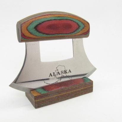 Inupiat Alaskan Cutlery Ulu Knife Exotic Colored Wood w/ Etched Map
