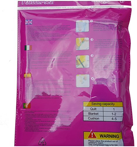 Large Vacuum Sealer Storage Bags. Long Lasting And More Durable Than Our Competitors. Keep the Vacuum seal 3 times longer than the competition. Ideal To Store Your Clothes Away For A Year Or Even More. Shrinks storage up to 78%. 60 x 80 cm. Enough for a full suite case or very small closet.