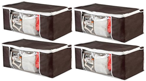 LUXEHOME Natural Thickened Non Woven Coffee Color Under Bed or Closet Storage Boxes, Set of 4