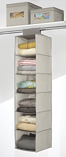 Description: The mDesign Chevron Fabric Hanging Closet Organizers keep your closets neat and organized. Use for shoes, purses, underwear, baby clothes, sweaters, pants, crafts or other accessories.