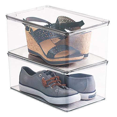 mDesign Closet Storage Organizer Shoe Box, for Flats, Athletic Shoes, Sandals - Pack of 4, Clear