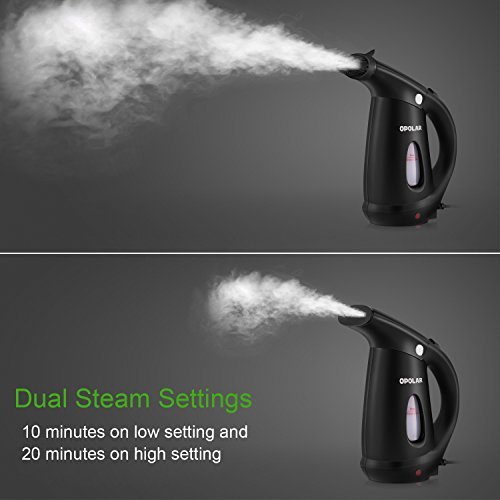 Description: Always look your crisp and wrinkle free best when you have the Opolar Handheld Garment Steamer on hand to make sure everything you wear is perfect. This handheld steamer features dual heat technology which provides faster, hotter steam, heating up in 60 seconds for 10~20 minutes of steam time. Two heat settings take care of a range of fabrics like wool, cotton, silk, satin and more, allowing you to get wrinkles out of a variety of clothing, like suits, shirts, pants and other outfits. Its easy-to-read water level windows lets you know how much water you have in the steamer, so you can plan ahead and ensure that you'll have enough capacity to get the wrinkles out of your outfit. The Opolar Garment Steamer runs hot enough to kill dust mites and bed bugs so you can rest worry-free every night. It has a 800W dual heater system comes with a soft cushion brush, removable, easy-to-fill water tank and nine-foot power cord for safe and convenient movement