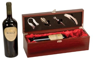 Personalized Rosewood Finish Single Wine Box with Tools Free Engraving with Purchase