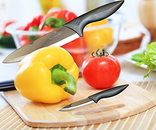 With blades 2x as sharp as steel, knives glide easily through nearly all fruits, vegetables, boneless meat. Stop wasting minutes struggling or sawing. Our hand-crafted, precision-angled blades have amazing sharpness retention and can achieve wafer thin cutting without any stress. Our ceramic knives are made of pure 4# zirconium powder -30% denser and stronger than most ceramic knives on the market. Our exclusive manufacturing process and thicker spine ensure our ceramic knives are MUCH more durable than others on the market.
