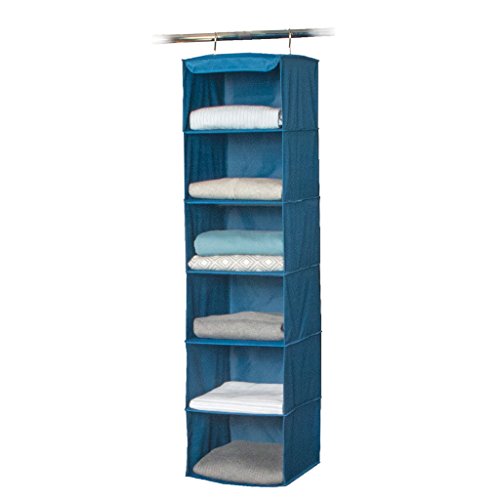 Description: Richards Homewares Rhi Home Teal 6 Shelf Sweater Black Organizer Create additional storage space in your home with the 6 Shelf Sweater Closet by Richards Homewares. Made from sturdy Canvas. this hanging closet organizer helps you organize your clothes in order and ready for the entire week. With the Strong rod with Velcro attachment. the Sweater Black Organizer closet storage unit hangs from any closet rod holding up to 50% more weight than conventional racks. the hanging closet bag protects all your shirts, pants, and sweaters from dust and dirt. Open front shelves provide easy access to garments. Hangs directly from closet