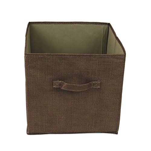 Set of 3 - Storage Bins Closet Cubes Organizer Brown Linen Box with Handle