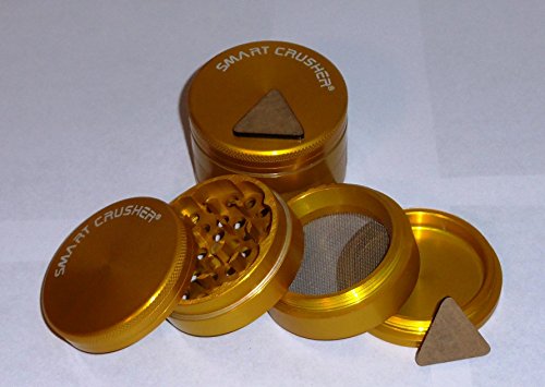 Description: SMART CRUSHER® ...Ensure consistently even grinds with the heavy-duty premium SMART CRUSHER Grinder: finely grind your herb or tobacco with the grinder's solid metal teeth, which are then filtered by the 500-micron pollen screen. Magnets keep your grinder's lid securely in place to ensure smooth grinds and to prevent spills while you are grinding.