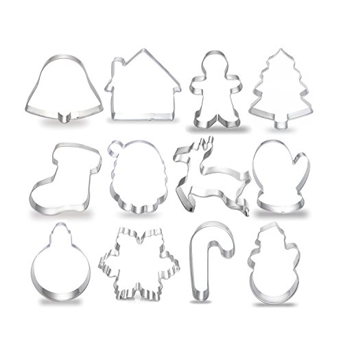 Supower Stainless Steel Christmas Cookie Cutters Shapes Biscuits Chocolate Molds Maker Set of 12