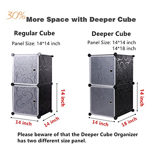 Unicoo - Multi Use DIY Plastic 12+6 Cube Organizer, Bookcase, Storage Cabinet, Wardrobe Closet Black (Deeper Cube - Black)