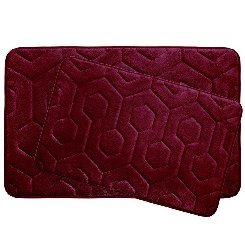 Bounce Comfort Hexagon Extra Thick Premium Plush 2 Piece Memory Foam Bath Mat Set with BounceComfort Technology, 20" x 34" Barn Red