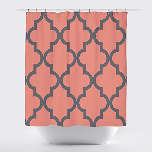 Gillham Studios Scalloped Durable Fabric Shower Curtain (71x74 inch) Large Gray on Coral