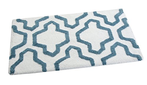 Description: Decorate your bathroom with this Saffron Fabs quatrefoil bath rug, this rug is available in many colors such as ivory, blue, white, grey and beige. This rug features a geometrics design that adds a luxury, relaxed feel to your bathroom. This rug is mode of 100percent soft cotton to provide higher water absorbency, perfect for bathrooms as these soaks water quickly. Thick pile texture enhances its softness. This rug comes in 3 sizes (34-Inch x 21-Inch, 36-Inch x 24 inch, 50-Inch x 30-Inch) to fit available space. These rugs are dyed with Azo free dyes. Saffron Fabs bath rugs can be used as area rug in kitchen, bedroom, hotels, and spa etc. These rugs are machine washable, cold separately; gentle cycle. Do not pull long yarn ends; trim with scissors. It is recommended to use a rug pad underneath, although heavy rugs do not slip due to their weight. Please do not select thick (heavier GSF) rugs if door opens on top of rug as it may cause issues opening the door. Most cotton rugs are handmade in different lots, therefore there might be some variance in color/size/design. Also, rugs are folded after manufacturing to put on cartons for shipping, and many times crease/fold line are very visible, which will settle after some period of usage. Available in multiple colors (ivory, blue, white, grey, beige, Chocolate and yellow)