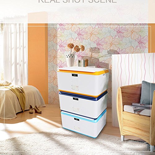 Best 78L Household Coded Lock Storage Box,Storage Bins for Home, Office, Car, White with Dark Blue