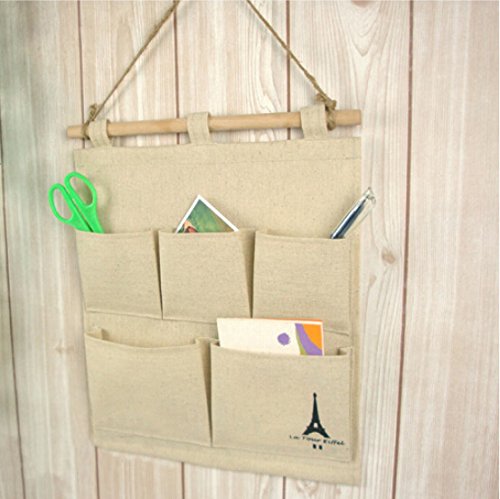 Best Cotton Fabric Wall Door Cloth Hanging Storage Bag Case 5 Pocket Home Organizer OFFICE-110