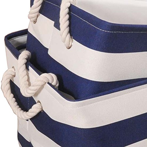 Best Ducklingup Waterproof Plastic-coated Navy Style Clothing Laundry Box Storage Bag Basket Hamper Blue and White Striped Big (Style23)