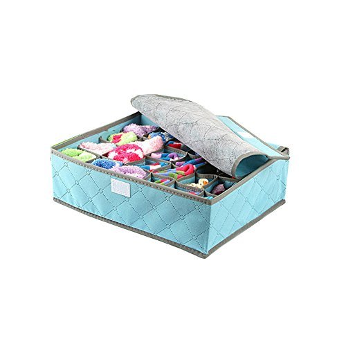 Mega Non-woven Bamboo Charcoal Drawer Dividers Closet Bra Underwear Socks Storage Box with Cover 36*28*11CM Blue