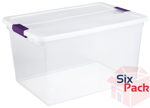 Sterilite 66 Quart (62.5 L) ClearView Latch Bin, Clear with Sweet Plum Latches, 6-Pack