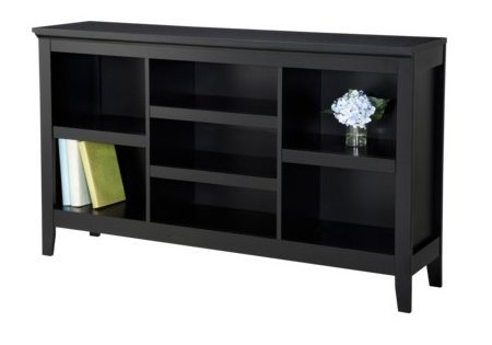 Description: The Threshold Carson Horizontal Bookcase in ebony does double duty in your home. Not only is this low bookcase an attractive way to display your favorite books and knickknacks, it can also work as a TV stand. Imagine using it as an entertainment center and stacking your favorite music, a retro record player, your charging station and video games and anything else that is an entertainment must. Or place this low bookcase against a wall with your collected treasures and photos for a decorative focal point. Number of Pieces: 1 Features: Horizontal, Fixed Shelves, Adjustable Shelves Frame Material: Hardwood Wood Finish: Ebony Surface Material: Melamine Finish: Lacquered Number of Shelves: 7 Maximum Shelf Weight Capacity: 25.000 Maximum Weight Capacity: Dimensions: 32.000H x 54.000W x 13.600D Care and Cleaning: Wipe Clean with a Dry Cloth Dimensions: 32.000H x 54.000W x 13.600D Weight: 64.000 Assembly Details: assembly required, tools not provided