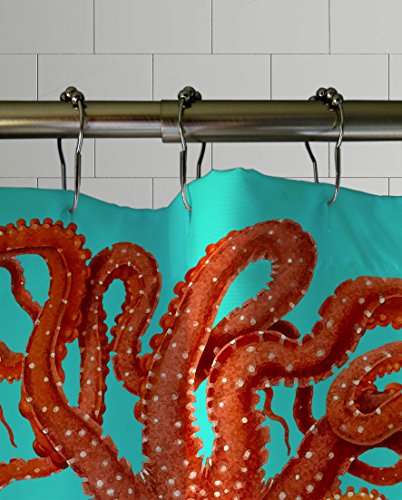 Aqua Blue Nautical Octopus Fabric Shower Curtain - Mildew Resistant - Vintage Nautical Octopus | UBU Republic