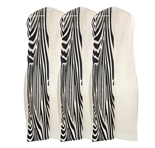 Bags for LessTM Breathable Wedding Gown Dress Garment Bag 72" long Set of 3, White with Zebra Print