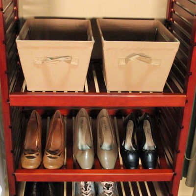 Description: Add more shelves to your 6-foot adjustable shelf tower and voila - you have more capacity and functionality. This kit features two shelves that slide into the matching tower. Made of wood in either a honey maple or red mahogany finish, the kit is ventilated for good airflow. Order this kit and get over five square feet of shelf space. John Louis Home component. 16 inch depth for John Louis Home closet tower. 2 finish options. Adds over 5 square feet of shelf space. Contains 2 - 24 inch shelves.