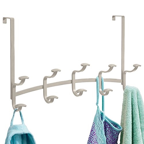 Description: mDesign's Over Door 10-Hook Rack has a classic style that is great for hall entries, bathrooms, bedrooms, and mudrooms. Made of durable steel, it easily hangs over standard interior doors.