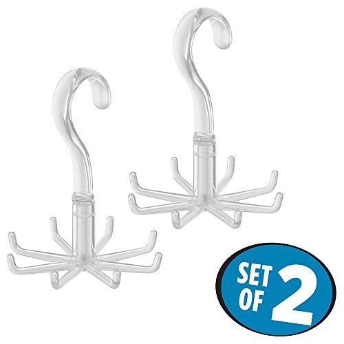 mDesign Revolving Closet Organizer for Ties, Belts, Handbags, Fashion Jewelry - Set of 2, Clear
