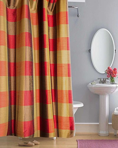 Description: The fabric is polyester with the look and feel of expensive pure silk dupion and it is of very good quality. The polyester fabric shower curtain is easy to maintain and less absorbent of water moisture. Machine washable and button holes provided for easy installation. The listing is only for the fabric shower curtain and not for the liner.