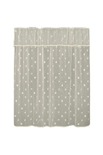 Description: Heritage lace sand shell 72"x72" ecru shower curtain and valance set. Here'S a great collection for decor at the shore: distinctive crushed lace features marine motifs of shells and starfish, with or without dainty trim of real seashells. The wide range of sizes includes a shower curtain set of valance with shell trim, and curtain without trim. Made in U.S.A. The final touch that pulls it all together with panache. Crisp and invigorating, like those days at the shore. Set includes valance with 1" natural shell hem trim included in stated dimension and shower curtain shower curtain features holes for rings. Recommend using with vinyl liner fine-gauge lace. (Valance instructions) sheers/lace: 100-percent polyester; exclusive of decoration. Made in U.S.A. Assembled in the U.S.A. From U.S. And imported components. Hand wash in cold water with mild soap. Do not bleach. Lay flat or hang to dry. Touch up with cool iron if desired. (Shower curtain instructions) 100-percent polyester. Made in U.S.A. Machine wash cold, gentle. Do not bleach. Lay flat or hang to dry. Touch up with cool iron if desired.