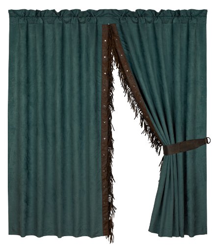 Description: The Del Rio Curtain set features a pair of rich blue panels, lined with embellished faux leather and luxurious western fringe. These curtains coordinate with the Del Rio valance and are part of the larger Del Rio ensemble in which tooled faux leather incorporates warm luxurious style. Rich blues and browns saturate southwestern elements to draw the eye to Del Rio’s bountiful assortment of luxurious accessories.