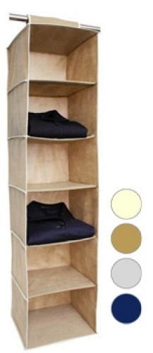 Description: A six shelf hanging closet organizer that provides extra storage room. Colors vary.