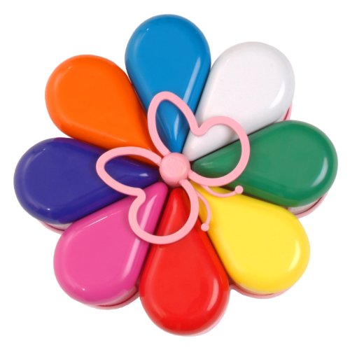 Description: Color organize your hair accessories, jewelry, arts & crafts and more. Girl's will love the bright colors of the Flower Caddy with Butterfly handle. It teaches early organizing skills and a fun way for girls to store their accessories. The caddy has colorful, petal-shaped removable storage compartments, fitted lids, Butter handle for easy portability, flower designed base with raised edges to keep each storage compartment securely in place. Product Dimensions: Each Container: 3 1/2 H X 4 1/2 L Diameter: 10 1/2 Circumference: 31 1/2