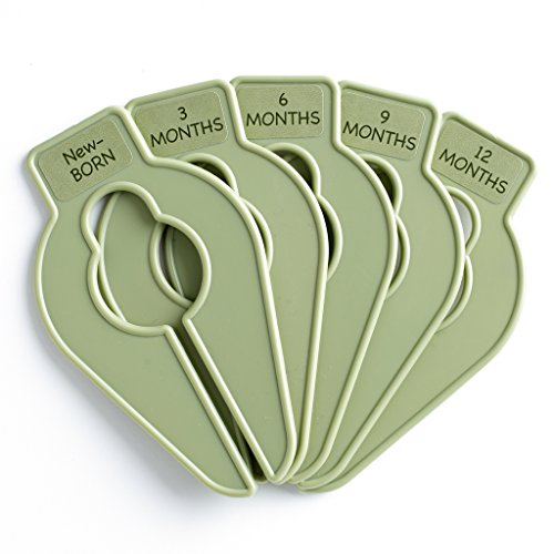 Description: A Baby Buddy Best Seller! It doesn't take long for a little one's closet to become a jumble of clothing in many different sizes. These size dividers make it simple to keep the whole wardrobe neat and orderly. Set includes five plastic size dividers, removable labels for 15 sizes ("Newborn" through Size 8"), and six blank, write-on labels. Now available in EIGHT colors: Pink, Light Blue, Sage, Yellow and NEW Chocolate, NEW Orange, NEW Tan, and NEW White. MADE IN USA.