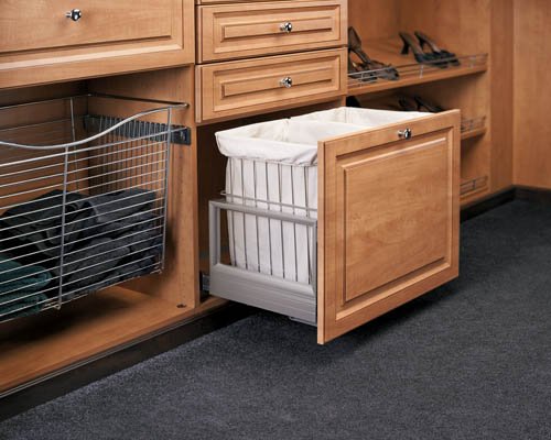 Description: Keep clothes off the floor and make laundry less of a chore with the Rev-A-Shelf Double Wire Pullout Hamper. Two machine washable cloth liners fit perfectly in removable wire baskets, held in place by your choice of a silver or white polymer base. Features: Rev-A-Motion Soft-Open/Soft-Close technology. Adjustable door mount brackets. Cloth bags included. Easy installation with only 4 screws. Machine washable canvas liner . Double Hamper. Specifications: Width: 25.5" Depth: 13.875" Height: 18.8125" Minimum Opening Width: 24" Minimum Opening Depth: 13.875" Minimum Opening Height: 18.875" Wasted space is a thing of the past! Rev-A-Shelf is the world's largest manufacturer of functional storage organizing products. Rev-A-Shelf can offer both the professional and the homeowner the finest cabinet storage solutions available.