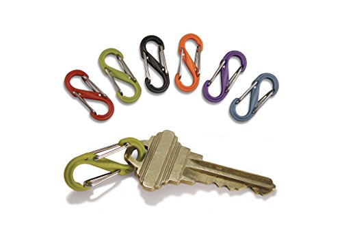Description: Here's a fun version of our unique, two-in-one S-Biner. Made of lightweight plastic and available in 15 bright colors, its double-gated design has the same functionality and same nearly endless variety of uses. Ultra-handy dual spring gates will hold, secure, and connect everything from house keys and cell phone holsters to technical camping gear. Attach valuables to the center bar for ultimate security, link gate ends to a second set of items and anchor, or connect many items together. Smaller-sized S-Biners (#0-#2) are excellent for securing individual keys to rings or zippers on clothing and for connecting two zipper sliders on backpacks, duffels, and suitcases. Medium sizes (#4-#6) connect everything from water bottles (to belt loops or backpacks), boots, skates, waders, sports gear, and garden gloves (to garage hooks and hanging straps), reusable grocery bags (to closet pegs and grab handles in your car). Identify at a glance while you organize- choose different colors to differentiate sets of keys, luggage, car fobs, ski passes, and all your other organized personal items.