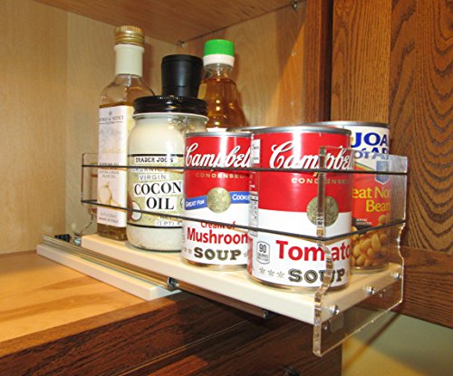 Description: The 5 x 1 x 11 is the uncle to the 33x1x11 drawer. It has almost twice the width and load capacity (2 ball-bearing slides for greater load carrying) to aid in storing, organizing and conveniently locating those large items in your stockpile of goods. This all-purpose 5.5" wide shelf will be a steady performer in your cabinet. The shelf will fit those odd shaped and larger containers. Imagine no more forgotten boxes and bottles in the back of the cabinet. The drawer unit arrives pre-assembled with the necessary mounting screws. Vertical Spice products are the unique and ultimate kitchen cabinet storage solution. Flexible bands and clear panels provide easy and complete access to your stored flavors. Steel ball-bearing slides give smooth, sturdy and long life to the drawers. The drawers and base are PolyTuf HDPE for long life and easy clean-up. Units can be placed in new, old and renovated cabinets and just a Phillips screwdriver is needed for very easy mounting. We have a complete line of many unit sizes and configurations for you to mix and match to meet your custom organizational needs.