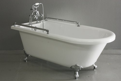 Description: Fabulous 59" Classic Towel Bar Extra Wide Clawfoot Bathtub. High gloss interior and exterior shells with a slip resistant floor. Approved by IAPMO, cUPC and Massachusetts Code Accepted. Everything needed to install in included in this package. The heavy duty faucet is cUPC. The claw feet are chrome plated cast iron, solid and strong. The tub has an integrated heat loss barrier to prevent heat loss during bathing and has been tested to show it will retain water heat of 6 degrees higher than cast iron for a period of at least 30 minutes. Tub minimum thickness is 3/4". The weight of the tub when empty is 162lbs.