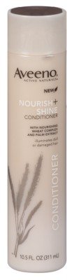 Description: Aveeno Nourish Plus Shine Conditioner, 10.5 Fluid Ounce -- 12 per case. Nourish dry, damaged hair back to life in just 3 washes.* This conditioner smooths and hydrates to illuminate even the dullest hair. This exclusive formula, infused with nourishing ACTIVE NATURALS Wheat Complex and shine enhancing palm extract, is designed to replenish moisture fortifying the hair shaft with protein and enhance reflectivity of dull, damaged hair. And in a clinical study, 79 Percent of women who tried it thought their hair was shinier after just 3 uses. *NOURISHPlus shampoo and conditioner system.