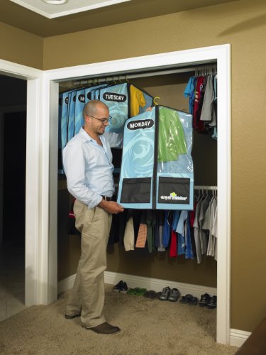 Description: For the busy parent who has to get the kids up, dressed and fed on a tight schedule, Organizables are the answer to your chaotic morning frustrations. The Organizables Standard Weekday Set are five individual hanging garment bags labeled Monday through Friday designed to keep daily outfits organized and in one place. Each bag features a zippered pocket to hold socks, belts and hats. At the beginning of each week, you and your child can choose the outfits he will wear for the next five days - putting an end to the weekday morning arguments over wardrobe! The five individual brightly colored garment bags have custom graphics designed to appeal to young boys and will complement any child's room or closet space. Constructed of long-lasting, non-toxic materials, Organizable garment bags are durable, lightweight and water resistent. Organizables children's clothes organizers are a proven and innovative solution for getting kids ready on time. Item #14401