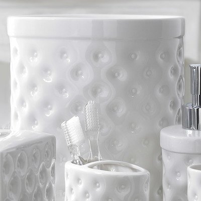 Description: Savoy bath accessories featuring Chic Fascination made of embossed porcelain. The pieces of this modern accessory set will work in harmony with your bathrooms decor to create a trendy ambience.