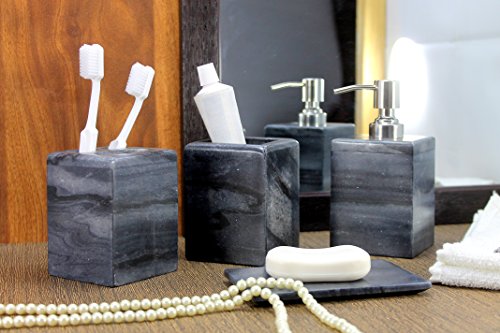 KLEO - Bathroom Accessory Set made from Natural Black/Grey Stone - Bath Accessories set of 4 includes Soap Dispenser, Toothbrush Holder, Utility and Soap Dish