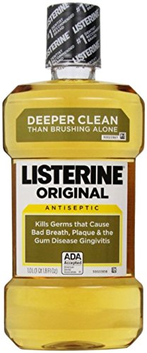 Description: Listerine Original Antiseptic Adult Mouthwash, 1 Liter -- 6 per case. Adding a 30 second rinse with ORIGINAL LISTERINE Antiseptic Mouthwash to your morning and nighttime routines is all it takes to get 24 hour protection against germs that cause plaque and gingivitis. LISTERINE Antiseptic Mouthwash Was shown in a clinical study to reduce 52 Percent more plaque and 21 Percent more gingivitis than brushing and flossing alone. Is the only nationally branded antimicrobial mouthwash to receive the ADA Seal of Acceptance for fighting plaque and gingivitis. Has over 100 years of safe use and 50 years of research, making it the most widely used and extensively researched mouthwash in the U.S. The ADA Council on Scientific Affairs Acceptance of Listerine Antiseptic is based on its finding that the product is effective in helping to prevent and reduce gingivitis and plaque above the gumline, when used as directed.
