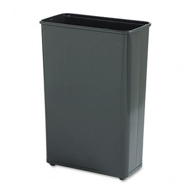 Description: Rubbermaid Commercial FGWB96RBK Steel Open-Top Waste Basket, Rectangular, 96-gallon, Black. Locked seam design with rolled wire rim and embossed panels provide rigidity and strength. Raised bottom prevents heat transfer in case of fire. This trash can meets ADA reach-range requirement and complies with Federal specification A-A-182 and the NFPA Life Safety Code. Powder-coat finish is attractive and tough. 1 inches long by 1 inches wide by 1 inches high. 12.333 pounds. Made in the USA.