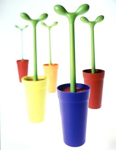 Description: Sshh! Its not really a potted plant. But pottied it will be. Leave it to avant-garde designer Stefano Giovannoni to design this ever-so-clever Toilet Brush. Propriety prevents us from translating its name, but, rest assured, the Merdolino can really stand up to whatever task toilet brushes do do! Molded in bright colors from thermoplastic resin and easy to clean, the Merdolino needs no fertilizer to blossom and brighten your bathroom setting.